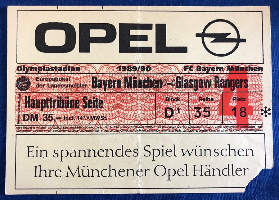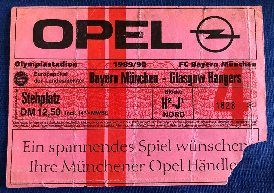 13th September 1989 – Rangers v Bayern Munich – European Cup