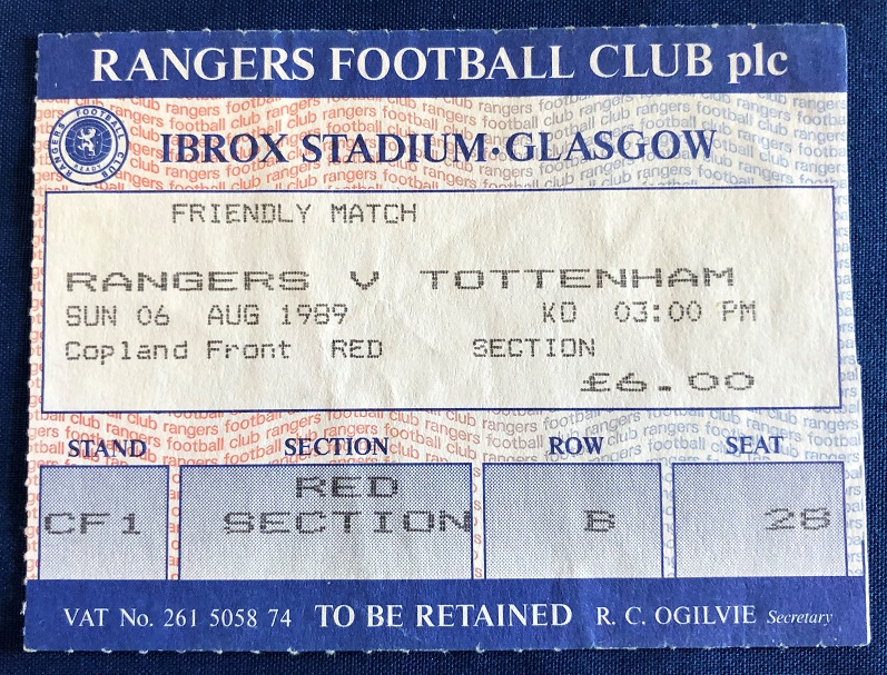 6th August 1989 – Rangers v Tottenham Hotspur – Friendly