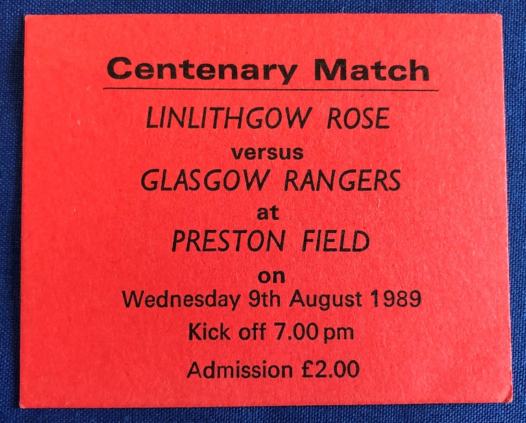 9th August 1989 – Linlithgow Rose v Rangers – Friendly