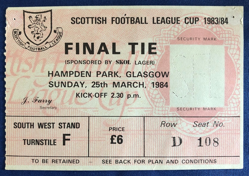 25th March 1984 – Rangers v Celtic – Scottish League Cup Final