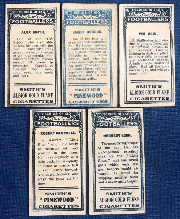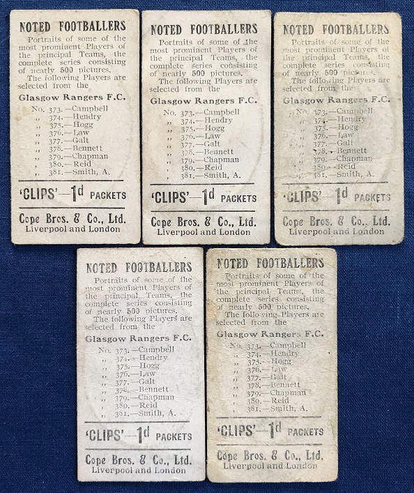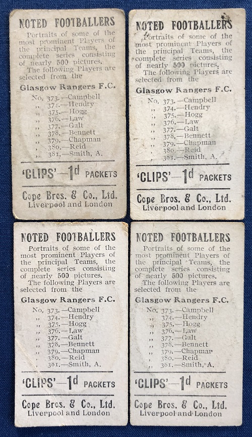 1912 – F. & J. Smith – Footballers – plus variations on rear of some cards.