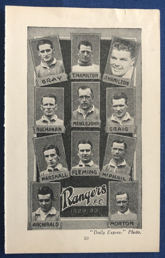 1929 – Unknown publisher – Rangers F.C. 1929-30.