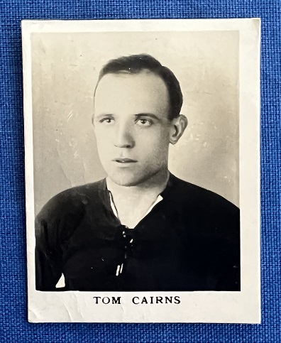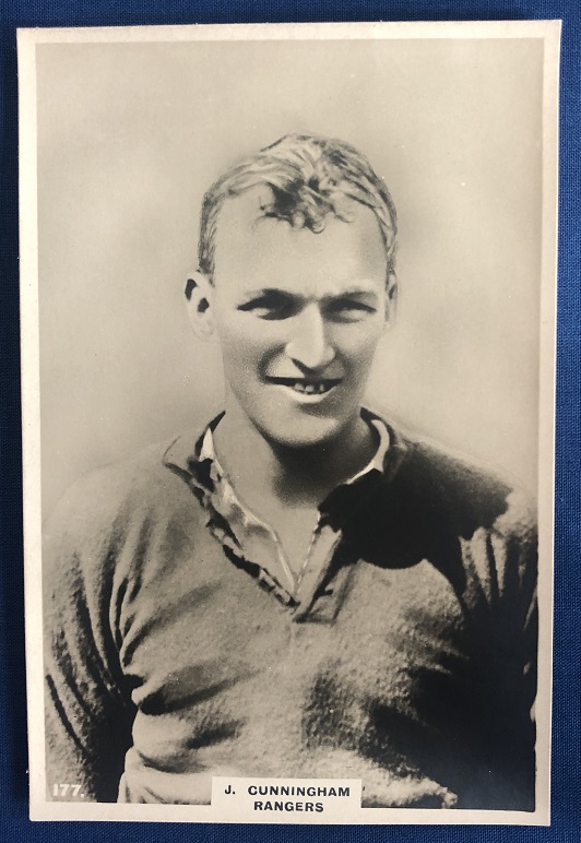 There is some debate as to which team J.R. Smith was playing for when his cards were issued. A Miniature card (with the same number) states he is a Kilmarnock player while the Cabinet card has him as a Bolton Wanderers player. Just to add further uncertainty, between playing for Kilmarnock and Bolton, Smith played for Cowdenbeath in the 1921-22 season before signing for Rangers in August 1922. He was then transferred to Bolton in November 1922. The consecutive run of issue numbering suggests he was with Rangers when the cards were issued. Image shows him wearing the strip of his previous club Cowdenbeath.