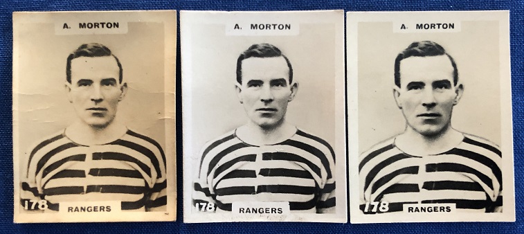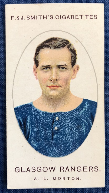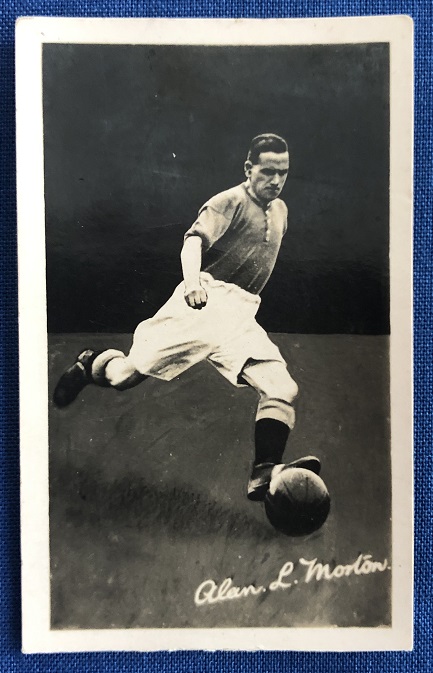 A. Morton – 3 x Miniature size – image of him wearing the strip of his previous club Queens Park.
