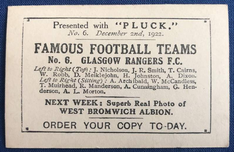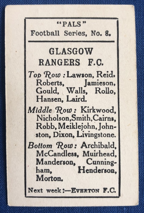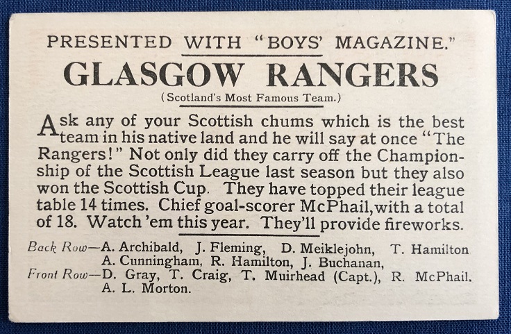 1923 – E. Hulton & Co. Ltd (Pals Magazine) – Glasgow Rangers F.C. 1922-23.