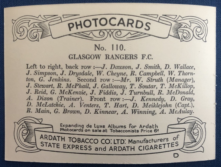 1936 – Ardath Tobacco Co. Ltd. – Photocards (series D) – Scottish Football Teams.