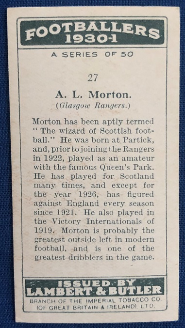 1932 – D.C. Thomson & Co. Ltd. (Adventure) – Football Snapshot Album. (3) Scottish Cup Winners, (6) Sam English & Alan Morton, (22) Jimmy Simpson & Thomas Hamilton.