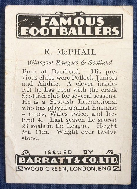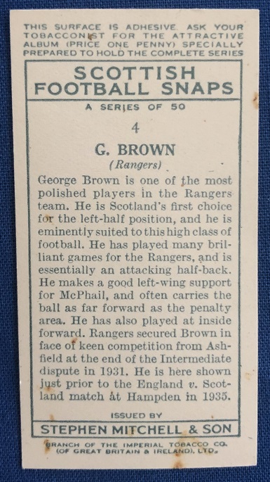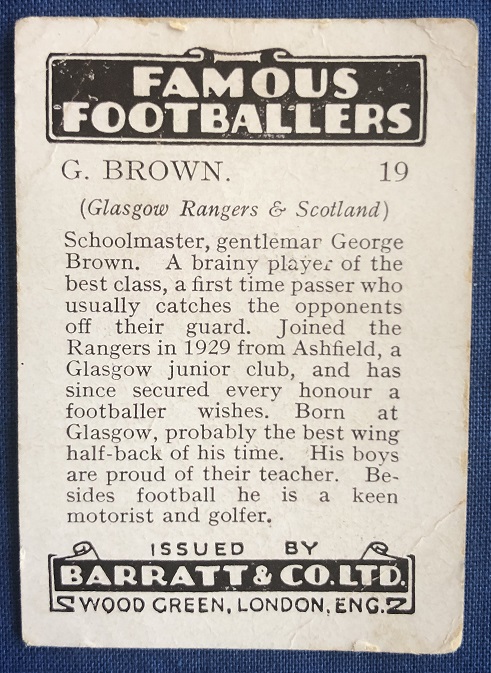 1932 – Unknown publisher – “International Celebrities” – (3) G. Brown, Glasgow Rangers and Scotland.