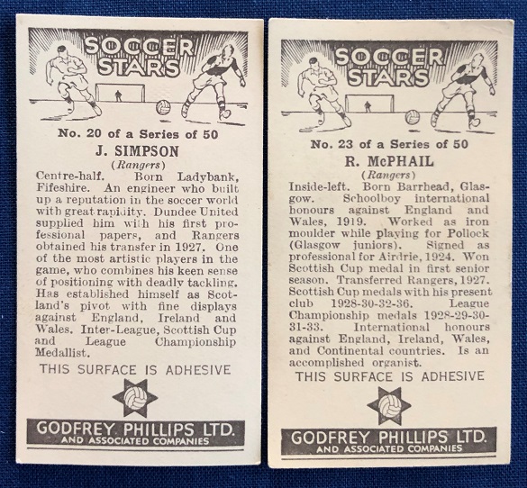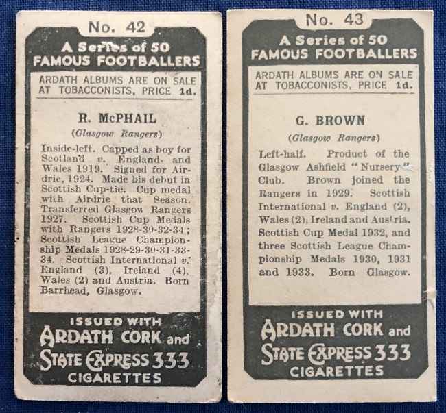 1933 – Godfrey Phillips Ltd. (B.D.V. cigarettes – Famous Footballers – plus variation.