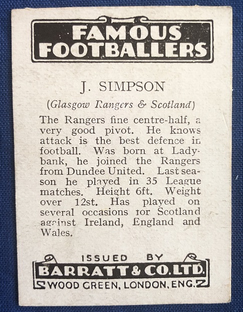 1934 – Ardath Tobacco Co. Ltd. – Famous Footballers.