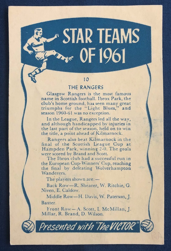 7th October 1961 – 1961 – D.C Thomson & Co. Ltd. (The Victor) – “Star Teams of 1961” series.