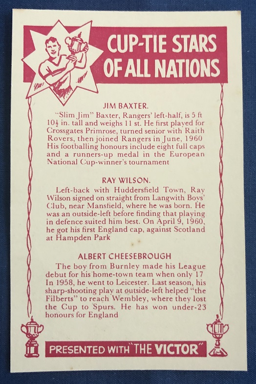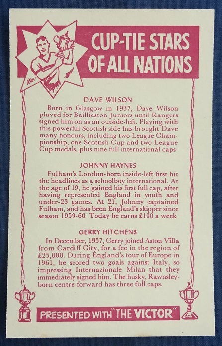 31st March – 1962 – D.C. Thomson & Co. Ltd. (The Victor) – “Cup Tie Stars Of All Nations” series.