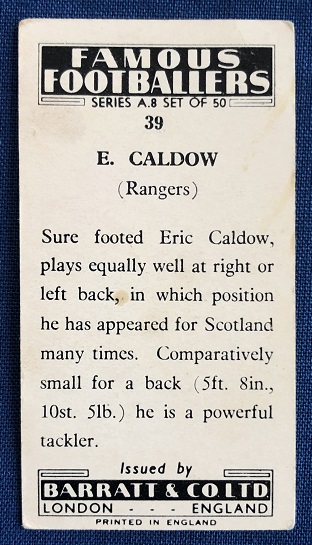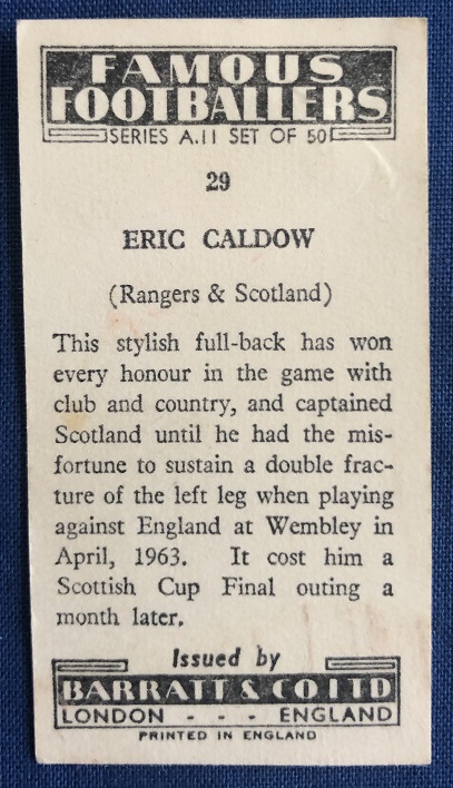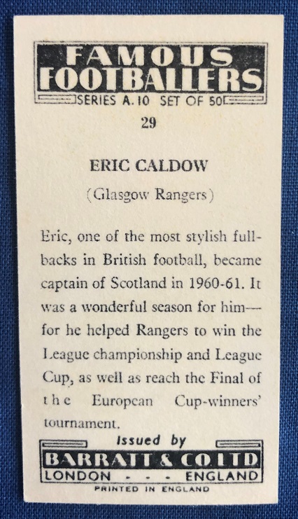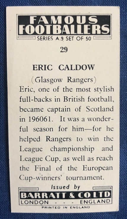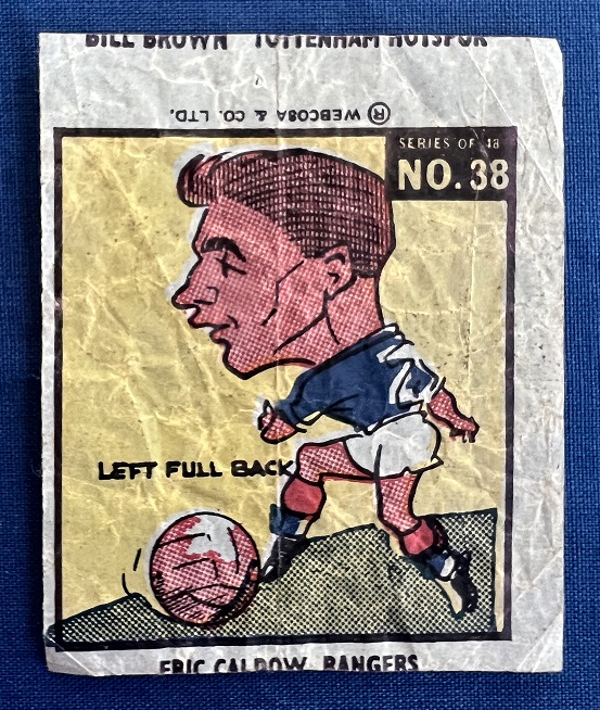 1961 – Webcosa & Co. Ltd. – Bubble Gum wrappers – Footballers – No.38, Eric Caldow, Rangers.