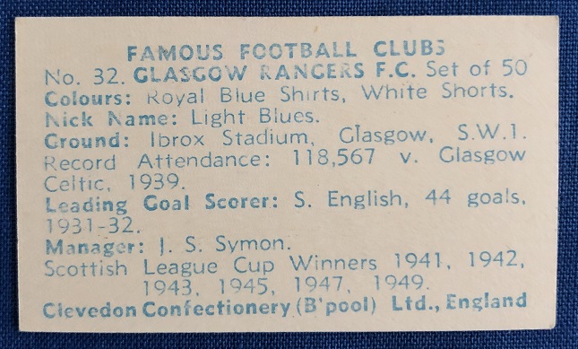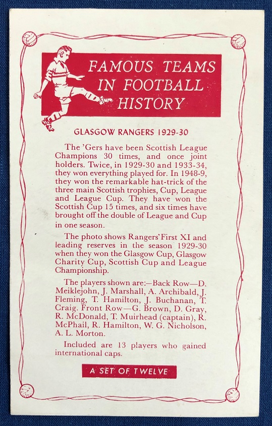1963 – Harper Ltd (London) – uncut sheet – ‘Glasgow Rangers’ with 5 other teams.