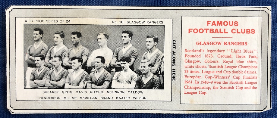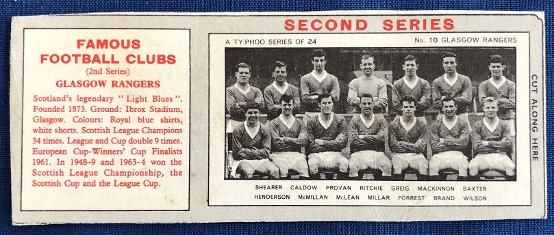 1963 – Typhoo Tea – Large Rangers Team Group Photo (1963-64 Season).