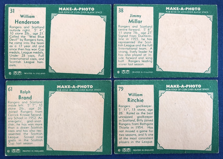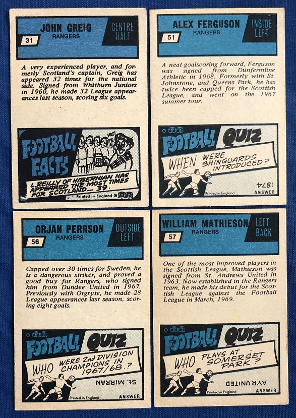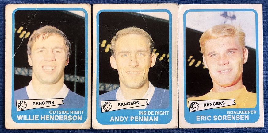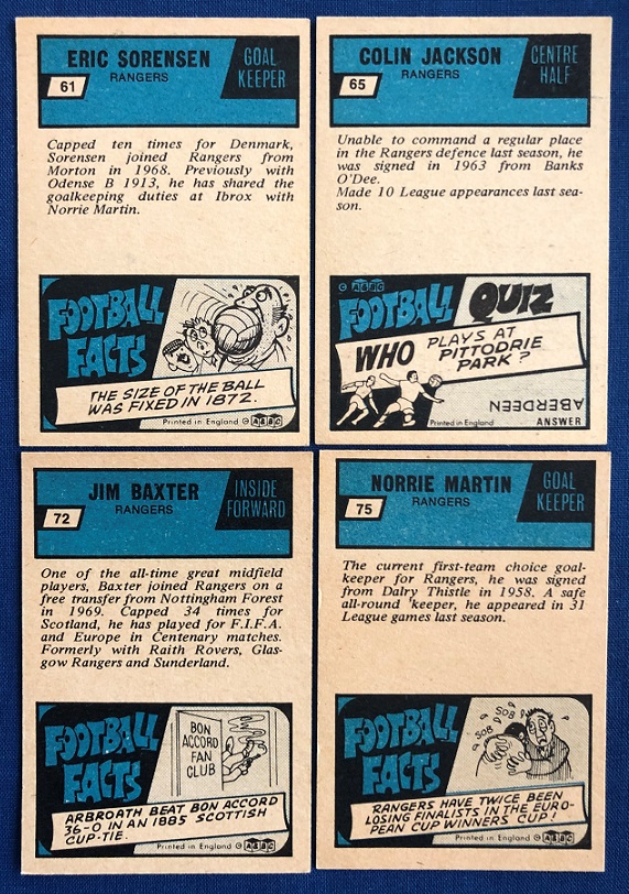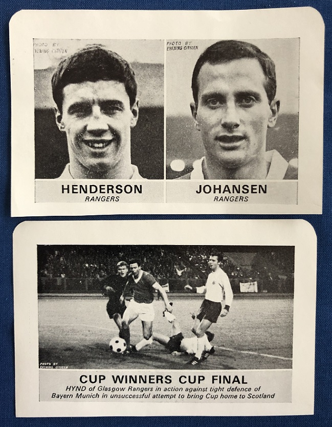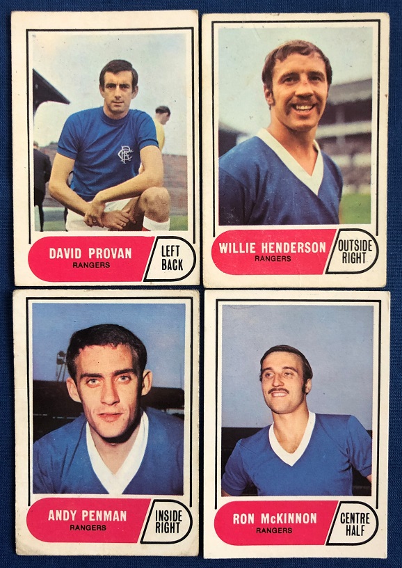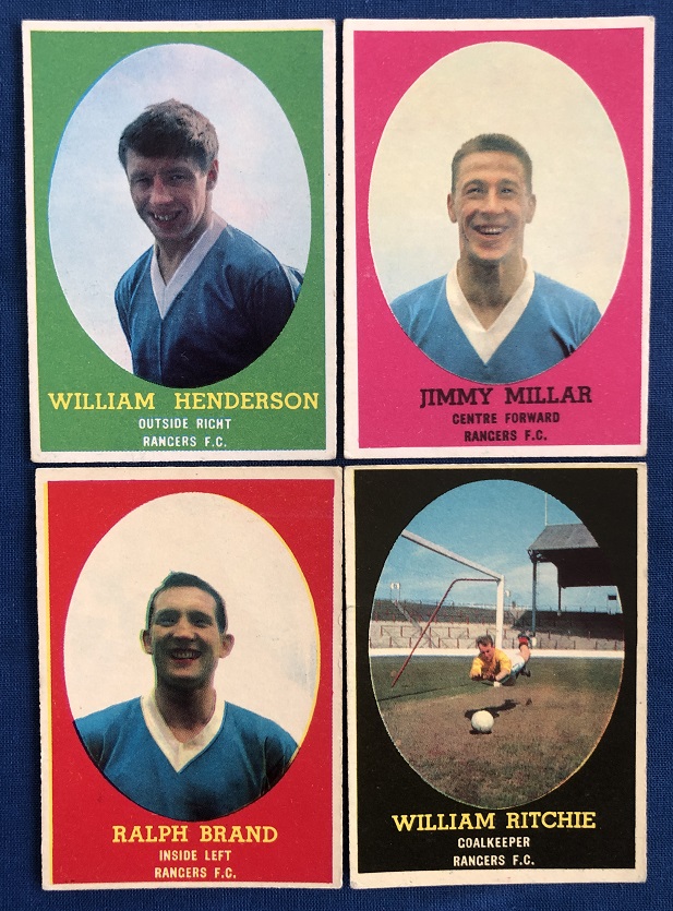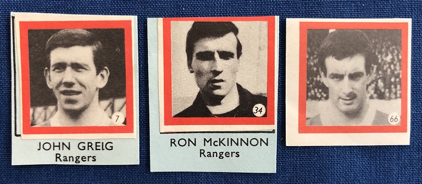 1967 – John Barr Productions – Footballers – Full uncut sheet containing all 4 Rangers players – plain-backed.