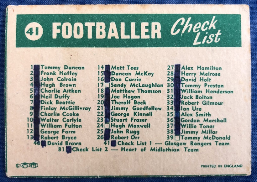 1967 – A&BC – Scottish “Footballer Picture Cards” series.
