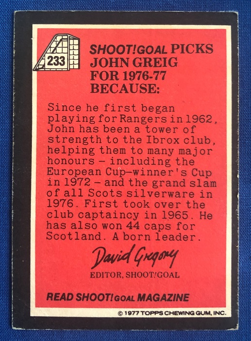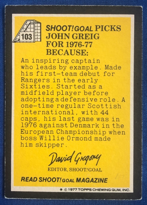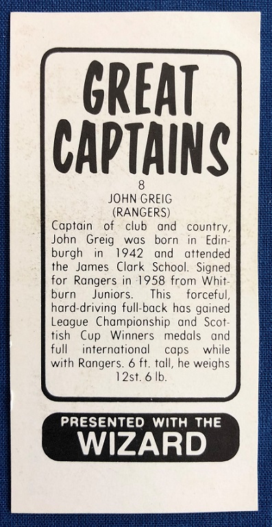 23rd October 1971 – 1970 – IPC Magazines Ltd. (Valiant) – Favourite Soccer Stars – John Greig (Red back).