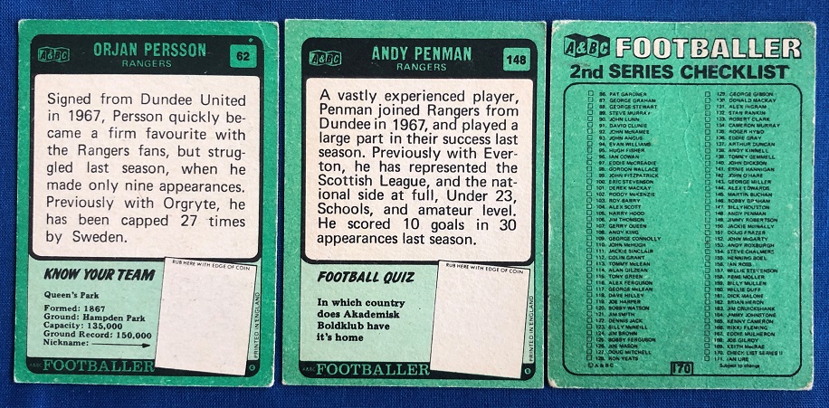 1974 – A&BC – Scottish Footballers – “Rub a Coin” series.