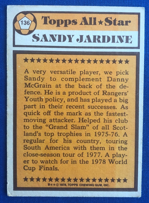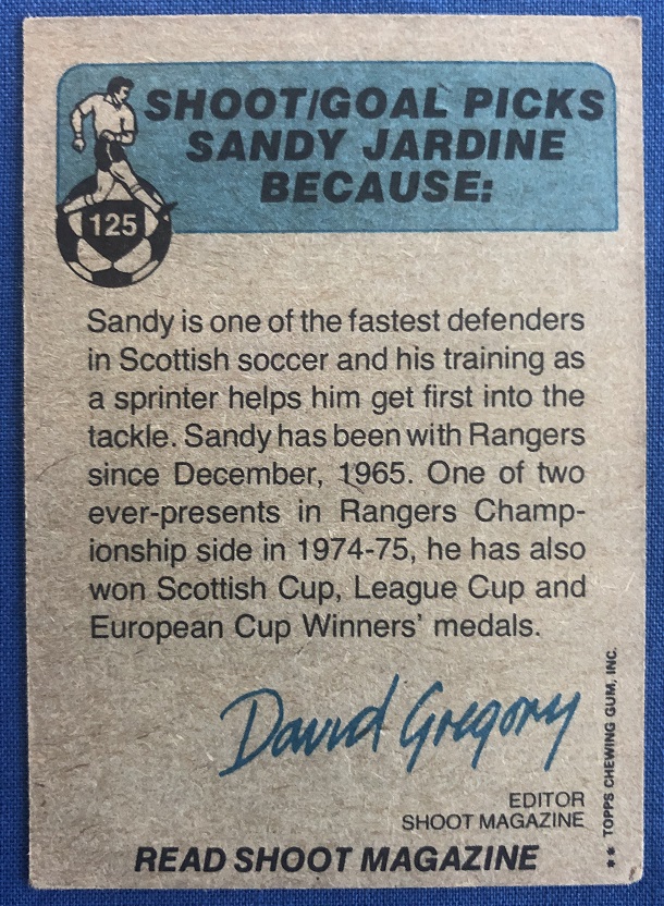 1973 – Unknown publisher – Star Album – Sandy Jardine (Rangers).