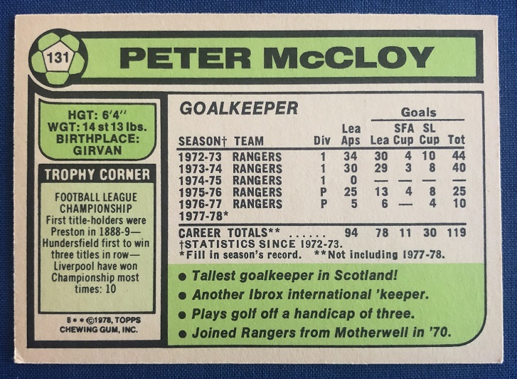 1970 – Anglo Confectionary Ltd. – Learn The Game – Willie Johnston, Glasgow Rangers (Dummy Kick).