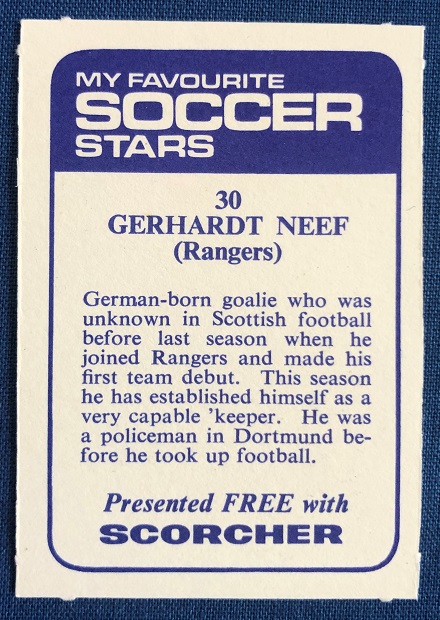 23rd October 1971 – 1970 – IPC Magazines Ltd. (Scorcher) – Favourite Soccer Stars – Willie Johnston (Red back).