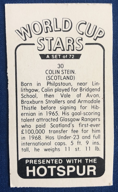 5th September 1970 – D.C. Thomson & Co. Ltd. (The Hotspur) – Stand Up Footballers – Colin Stein.