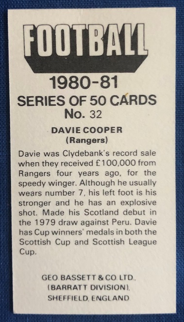 1980 – Barratt & Co. Ltd. – Football 1980-81 – Davie Cooper.