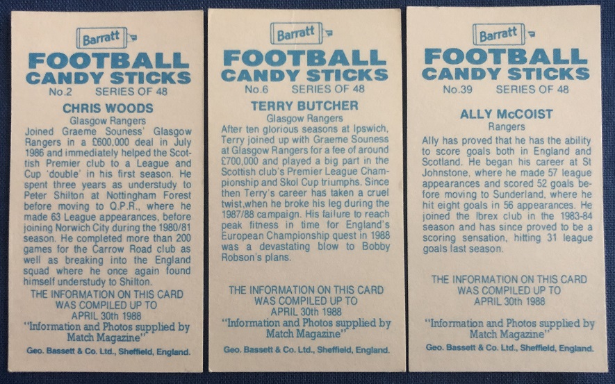 1988 – Barratt & Co. Ltd. – Football Candy Sticks.