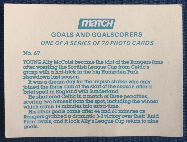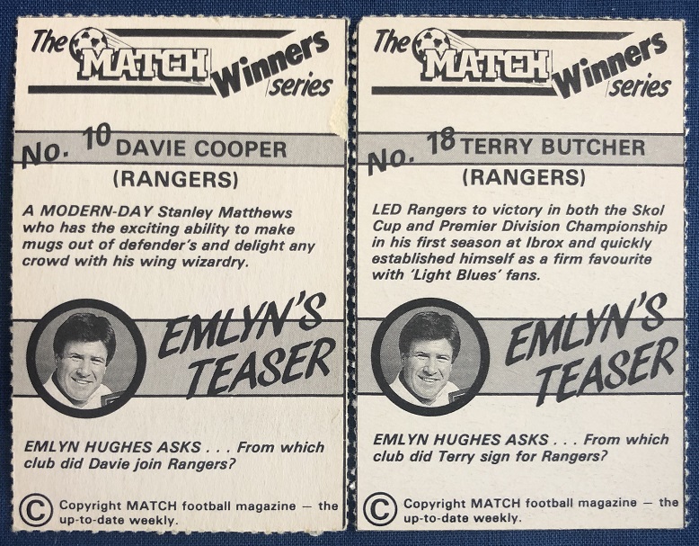 1984 – Match Magazine – Goals And Goal Scorers Photo Cards.