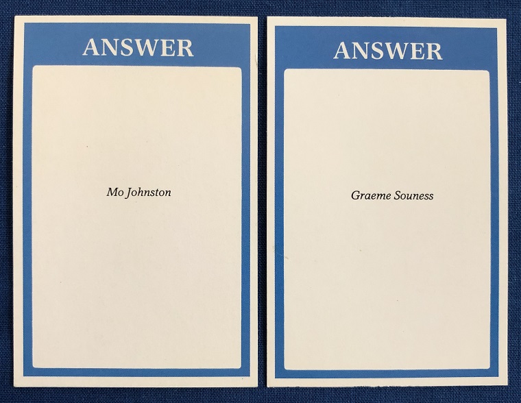 1987 – Question Of Sport (Green back with “QS” and players name).